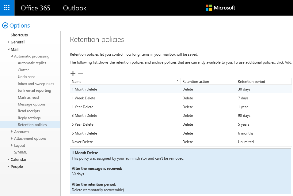Администраторы могут создавать новые теги и политики хранения с помощью правильного разрешения Exchange центра администрирования (EAC) или PowerShell. Подробные действия см. в описании Create a Retention Policy.