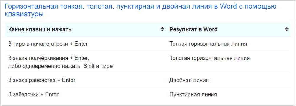(Кликните для увеличения) Линии в Word с помощью клавиатуры