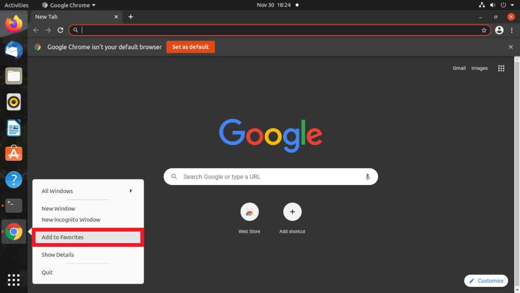 If you use Google chrome often, then you can add Google Chrome to Favourites for quick access: