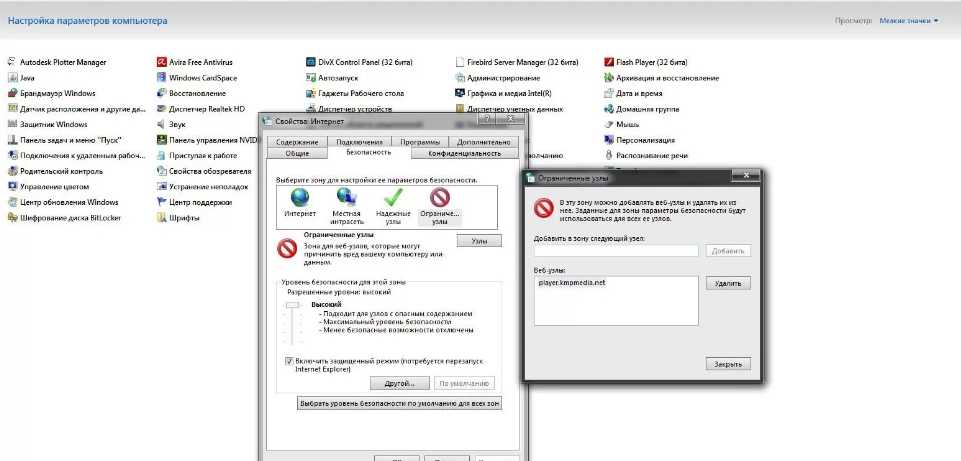 - откроется окно, в котором будет строка «Добавить в зону следующий узел», в нее нужно вписать адрес player.kmpmedia.net;