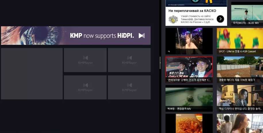Остановить боковую панель рекламного окна KMPlayer