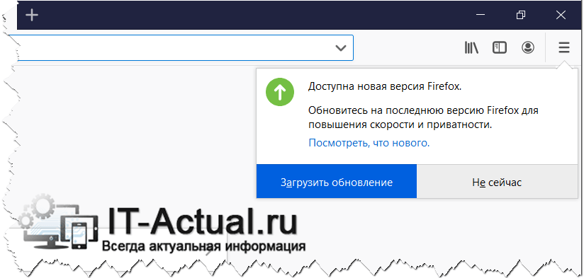 Отключение сообщения о выходе обновления, запрет его установки в Mozilla Firefox