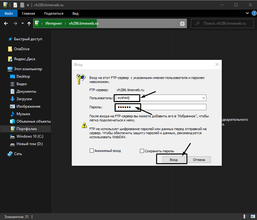 Чтобы подключиться к FTP серверу через проводник, выполните следующие операции: