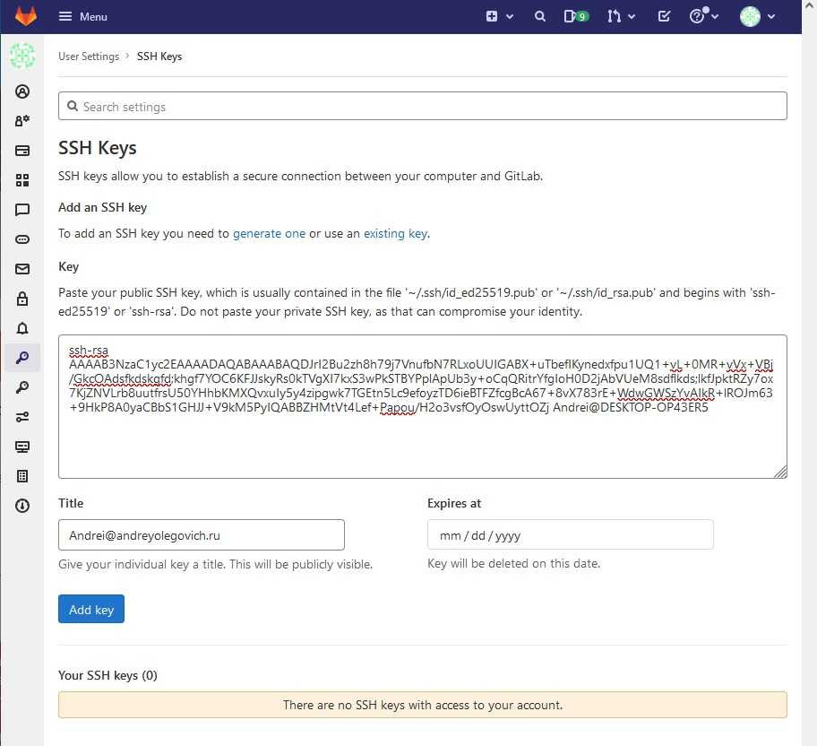 Enter file in which to save the key (/c/Users/Andrei/.ssh/id_rsa): gitlab_com_rsa