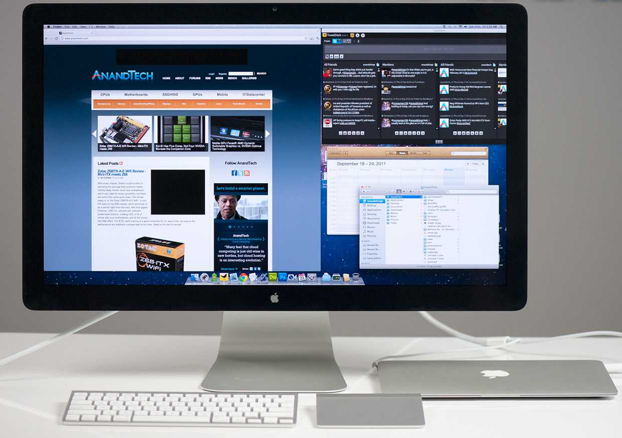 Владельцы последних поколений Apple Cinema Display и Thunderbolt Display лишены удовольствия приобретать какие-либо кабели отдельно. Cinema Display с разными вариациями названия выпускается с 1999 года и чаще всего встречается с разъемом DVI-D, а затем и Mini Display Port. Если вы счастливый обладатель старого монитора Apple и нового MacBook, то тот или иной переходник все-таки понадобится. В остальных случаях проблем возникнуть не должно. Современные мониторы Apple имеют встроенный кабель с разъемом Mini DisplayPort (в Cinema Display) или Thunderbolt (в Thunderbolt Display) сразу же имеют встроенные кабели с соответствующими разъемами, а также кабель питания MagSafe, позволяющий заряжать MacBook.