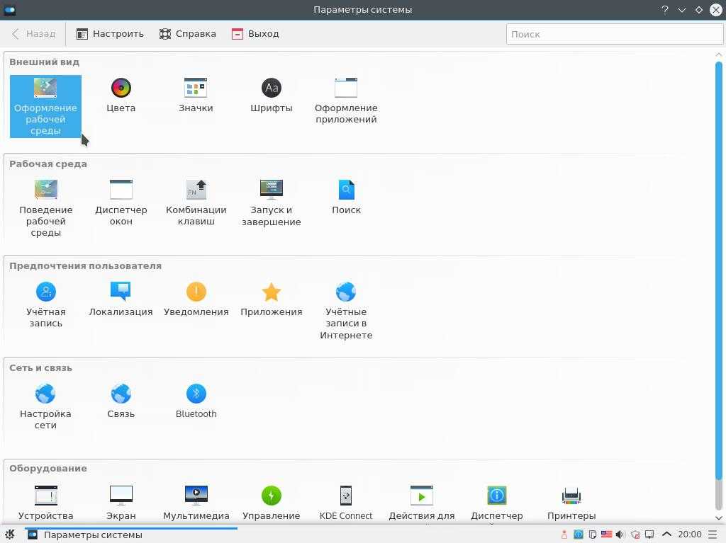 С KDE новичку будет разобраться намного проще. Панель и главное меню ведут себя точно так же, как и в Windows. С помощью правой кнопки мыши для большинства элементов интерфейса можно вызвать контекстное меню и настроить их, а все настройки выполняются средствами самого окружения. Конечно, в KDE тоже можно настроить горячие углы, но по умолчанию там всё стандартно.