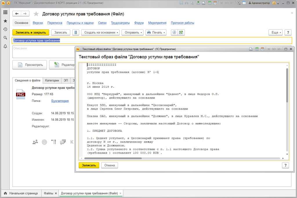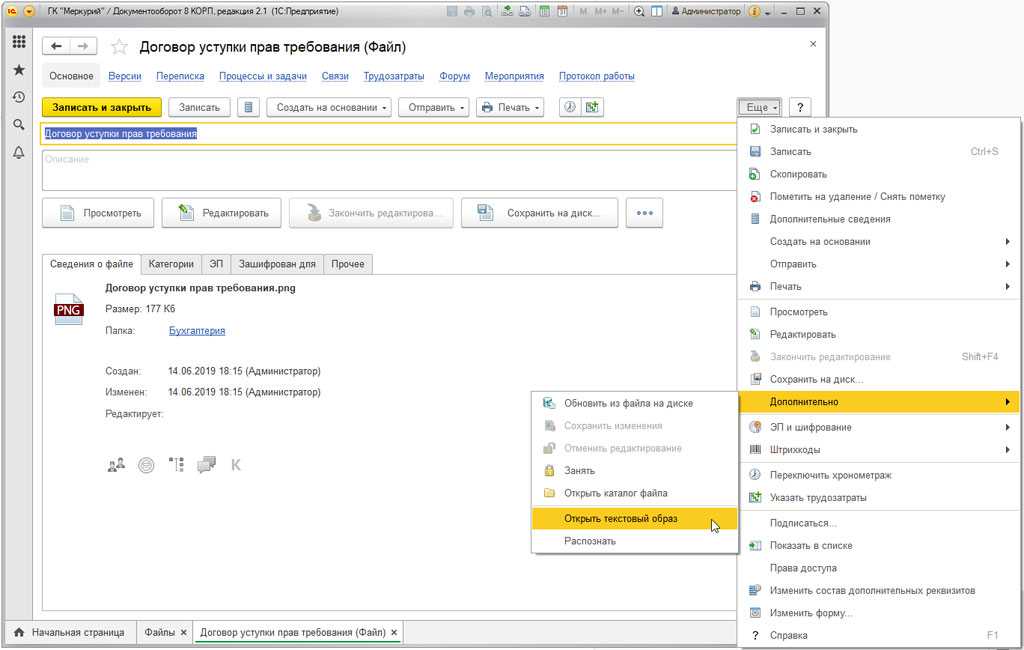 Когда распознавание файла завершено, он попадет в индексацию 1С:Документооборот. Это позволит быстро найти его через полнотекстовый поиск документов по вхождению фраз и слов. Пользователи смогут получить доступ к основной его версии в формате PNG.