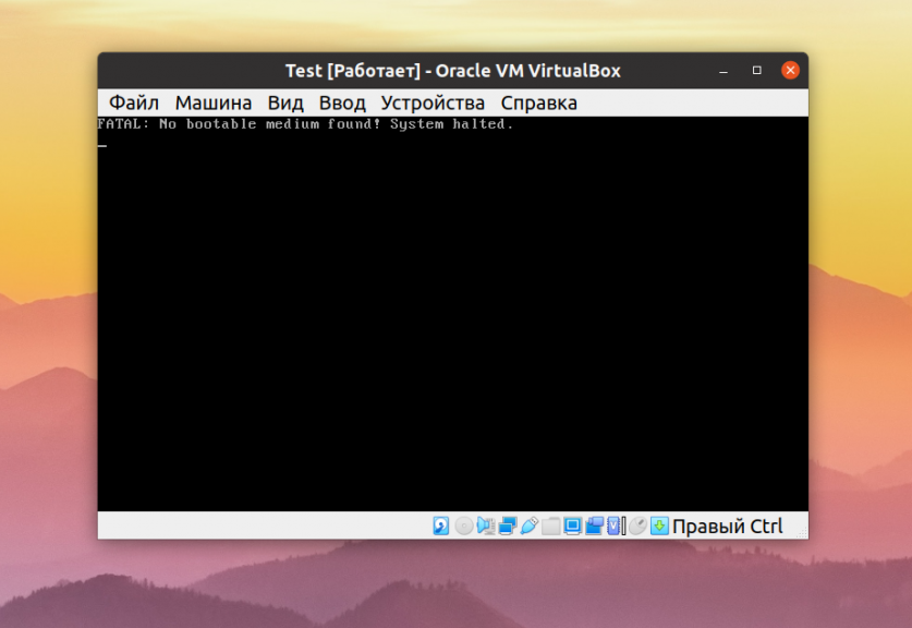 Эта ошибка означает, что загрузочный диск к виртуальной машине не подключён. Если это только что созданная виртуальная машина, то её жесткий диск ещё пуст, на нём ничего нет, и поэтому с него нельзя загрузится. Для того чтобы установить операционную систему надо подключить к машине ISO образ с установщиком и загрузится с него. Обычно при первом запуске VirtualBox автоматически предлагает выбрать образ с установщиком. Но если вы упустили этот момент, то надо сделать всё вручную.
