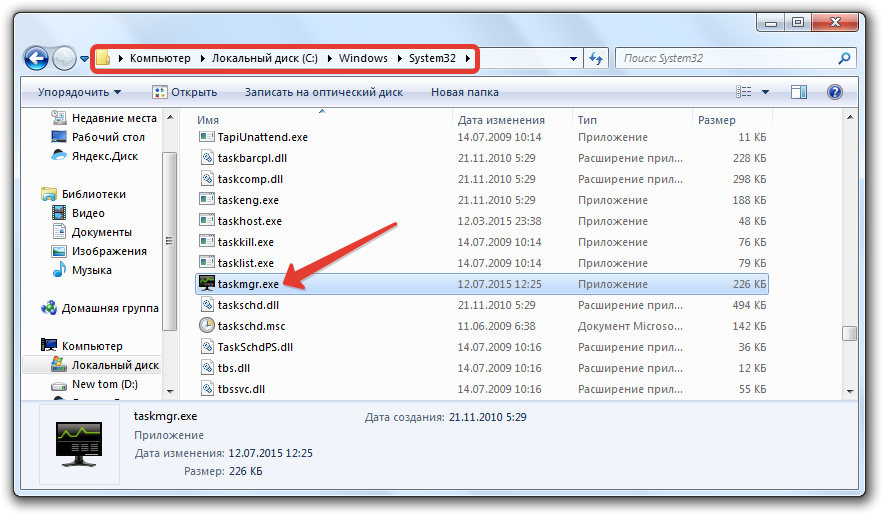 Отказ запуска «Диспетчера задач» имеет под собой несколько причин. Чаще всего это удаление или повреждение файла , находящегося в папке, расположенной по пути