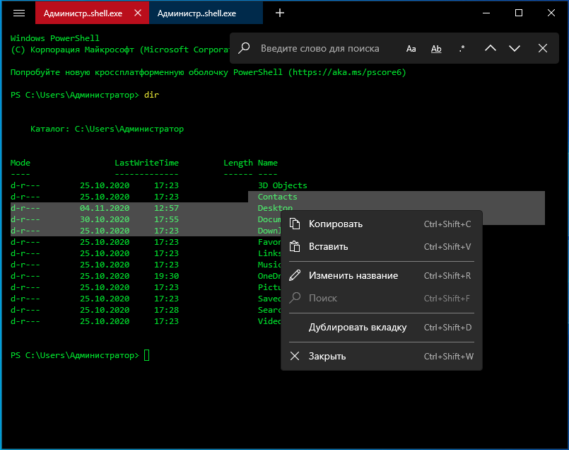 - Поддержка PowerShell (по умолчанию), CMD, WLS и других командных оболочек, путь к которым задается в настройках приложения.