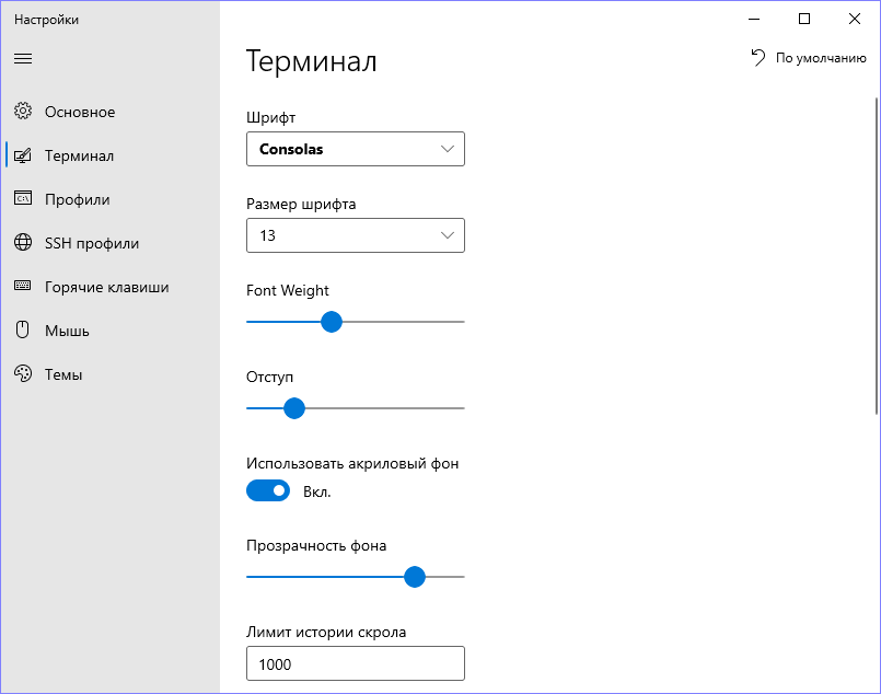 - Множество настроек, позволяющих изменять внешний вид терминала.