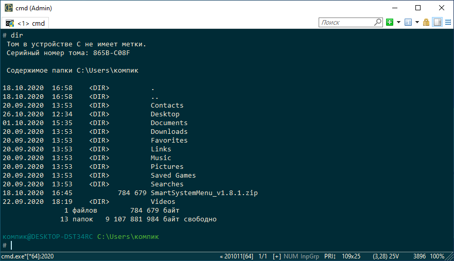 После запуска CMD, вы автоматически оказываетесь в папке