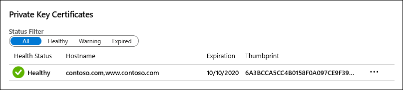 По завершении операции вы увидите сертификат в списке Сертификаты закрытых ключей. Если импорт завершается ошибкой, сертификат не соответствует .