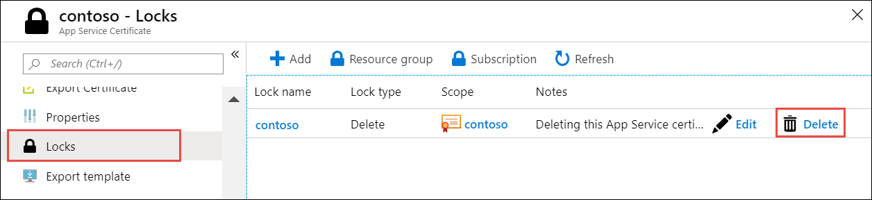 Выберите только что добавленный сертификат, а затем выберите значок Edit .