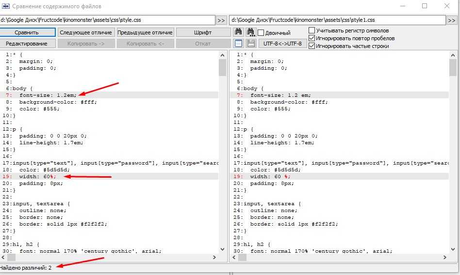- Поверхностное или рекурсивное сравнение одного или двух файлов и каталогов;