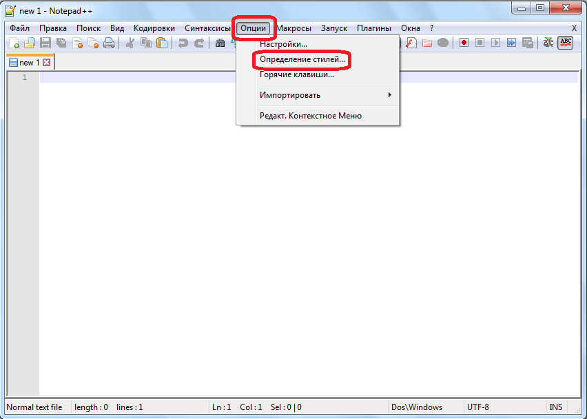 Еще в уже знакомом пункте «Опции» есть вкладка «Определение стилей».