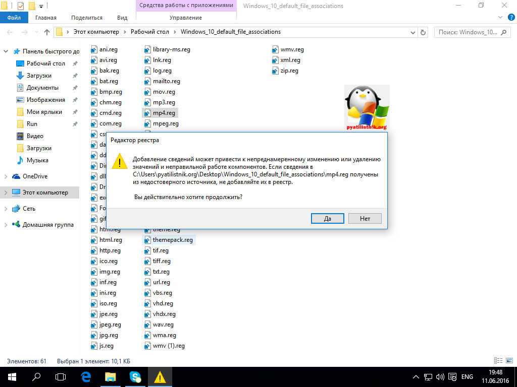 В итоге у вас будет папка с большим списком. Выбираем нужный и запускаем. Вы увидите сообщение редактора реестра о том, что внесение сведений может привести к непреднамеренному изменению или удалению значений — согласитесь и