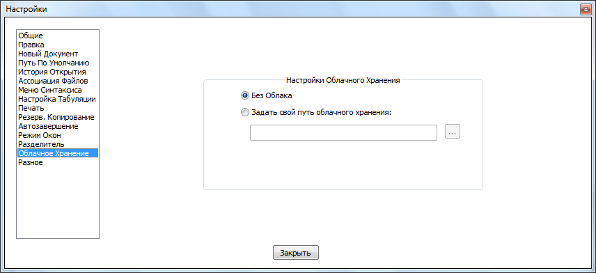 Во вкладке «Облачное хранения» можно указать место хранения данных в облаке. По умолчанию эта функция отключена.