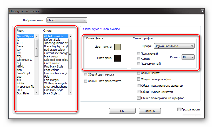 Масштаб – Позволяет увеличить или уменьшить масштаб окна в редакторе Notepad++.