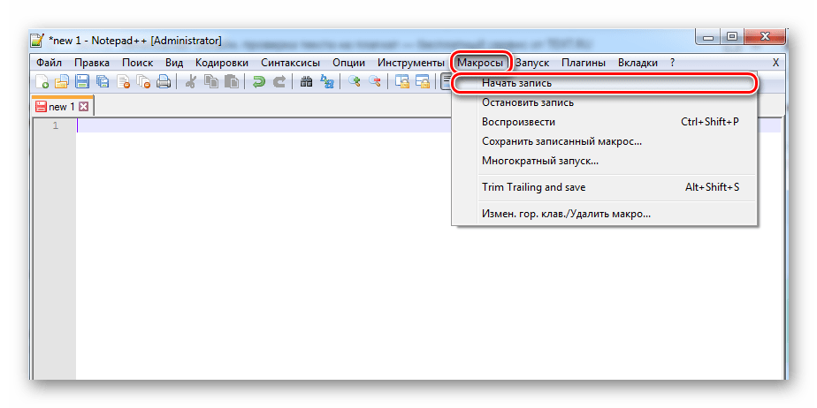 - Чтобы установить его, нужно в верхнем меню выбрать пункт «Макросы» и кликнуть по кнопке «Начать запись», после чего написать часть кода, которой вы часто пользуетесь, например стандартную структуру HTML документа.