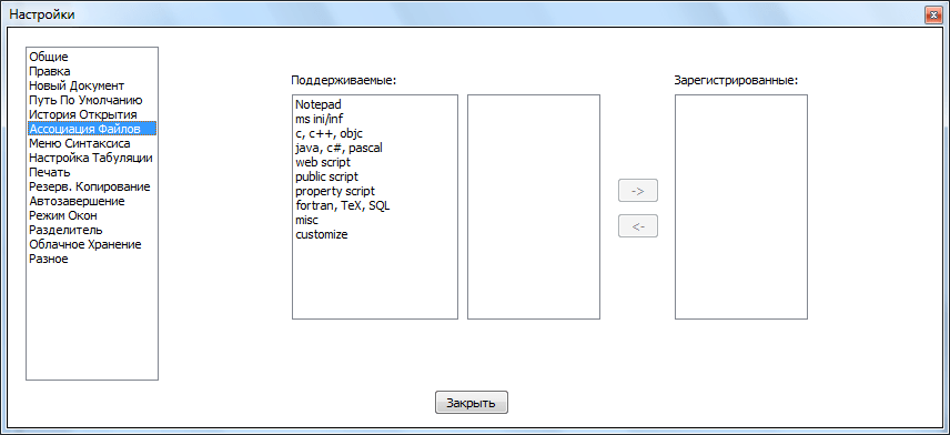 Перейдя в раздел «Ассоциации файлов», можно к уже имеющимся значениям добавить новые расширения файлов, которые по умолчанию будет открывать программа Notepad++.