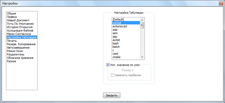 В разделе «Настройка табуляции» определяется, какие значения отвечают за пробелы и выравнивание.