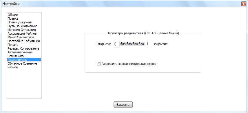 В разделе «Разделитель» устанавливается знак для разделителя. По умолчанию это скобки.