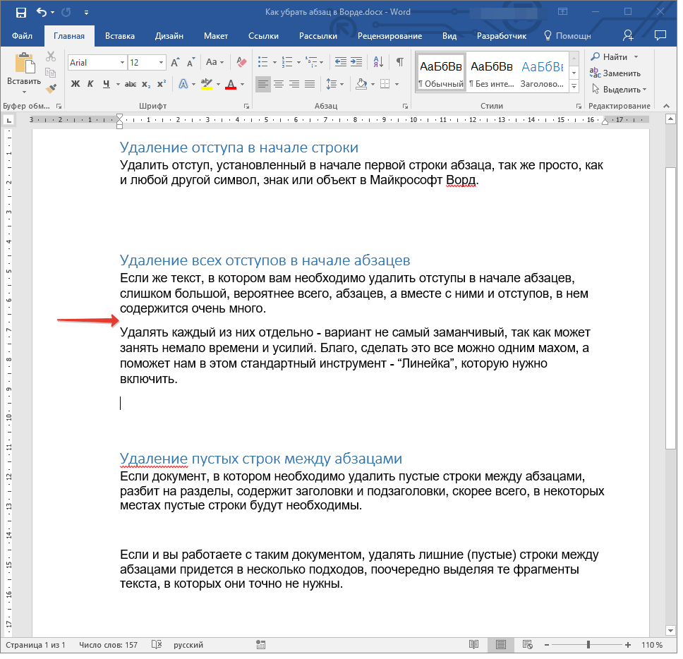 Именно о том, как убрать красную строку в Word и пойдет речь ниже. О том, как убрать или изменить размер интервалов между абзацами, вы можете прочесть в нашей статье.