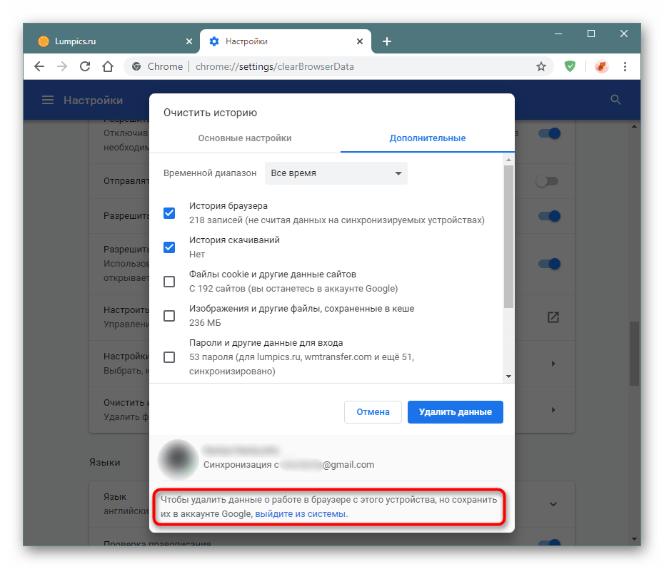 Некоторые юзеры решают полностью очистить свой веб-обозреватель, в том числе и от паролей. Это довольно радикальный вариант, так как если какая-то из комбинаций будет забыта, посмотреть ее через Google Chrome уже не получится. Тем не менее если вы уверены в своих действиях и решили сделать это, например, из безопасности, предварительно переписав используемые пароли в более надежное место, следуйте этим шагам: