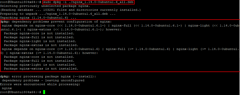В отличие от и , не разрешает зависимости. Если при установке пакетов deb вы получаете какие-либо ошибки зависимостей, вы можете использовать следующую команду для разрешения и установки всех зависимостей пакетов:
