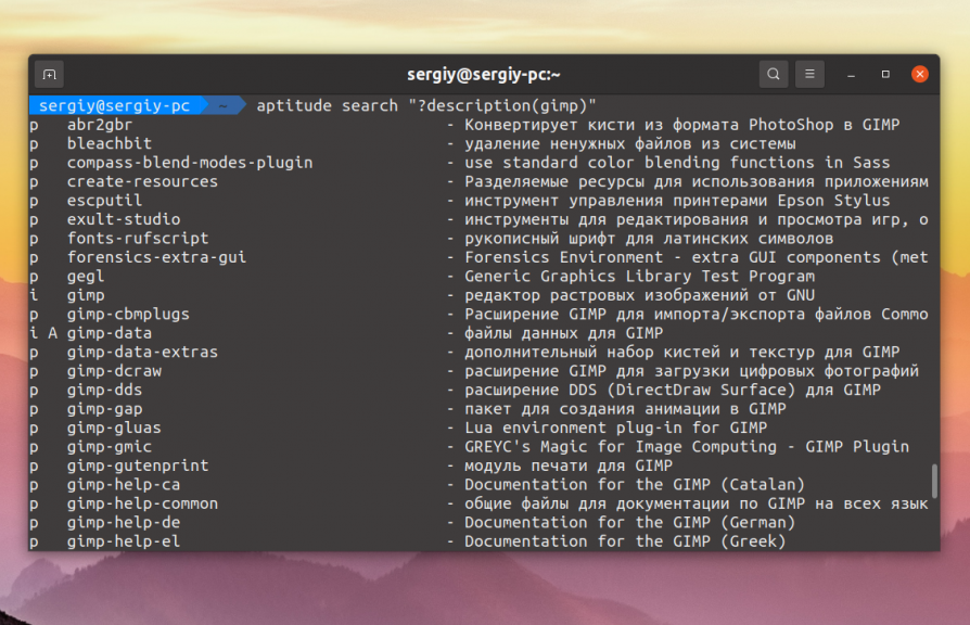 Если вы не знаете как точно называется пакет, можно выполнить поиск пакетов apt с помощью команды search: