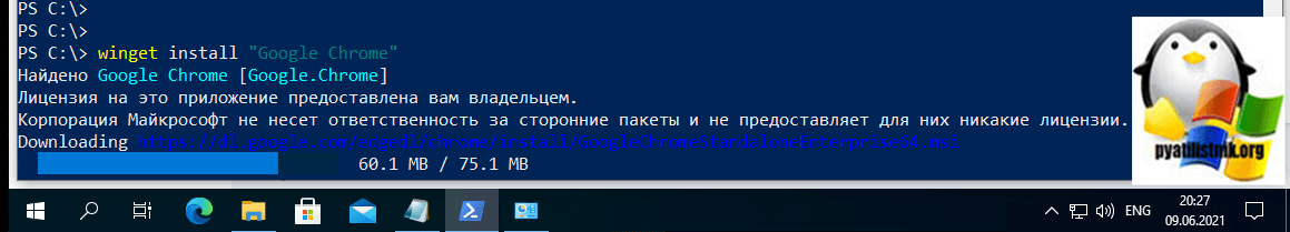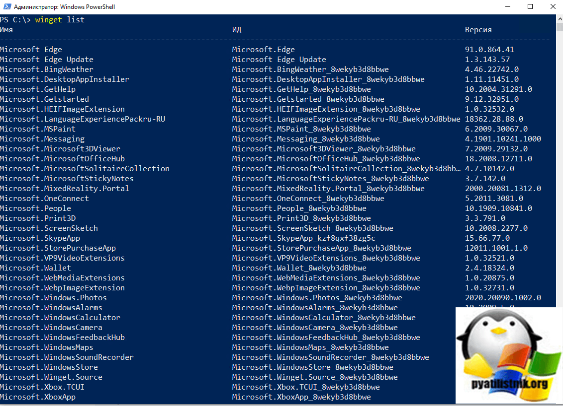 Процесс установки приложения через Winget. Тут все просто, в менеджере пакетов Windows есть ключ install, структура будет такой: