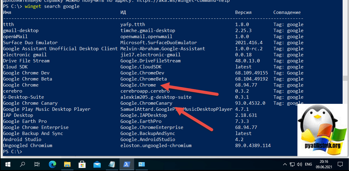 В результате вы получите все пакеты с ключевым словом «Google». Мне интересен Google Chrome и его версия Canary.