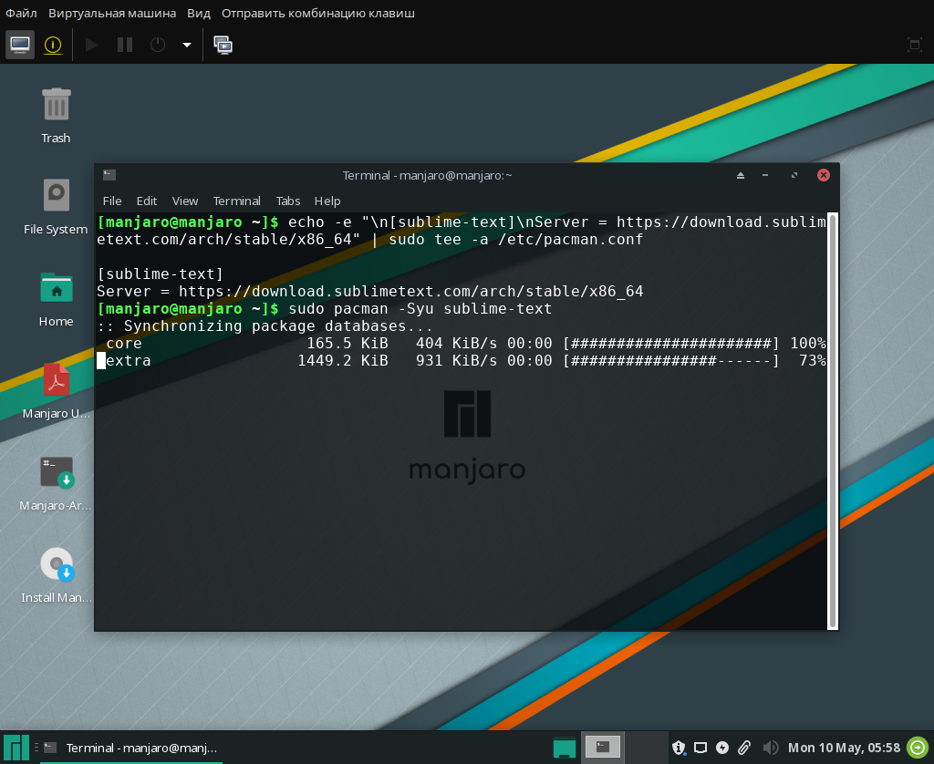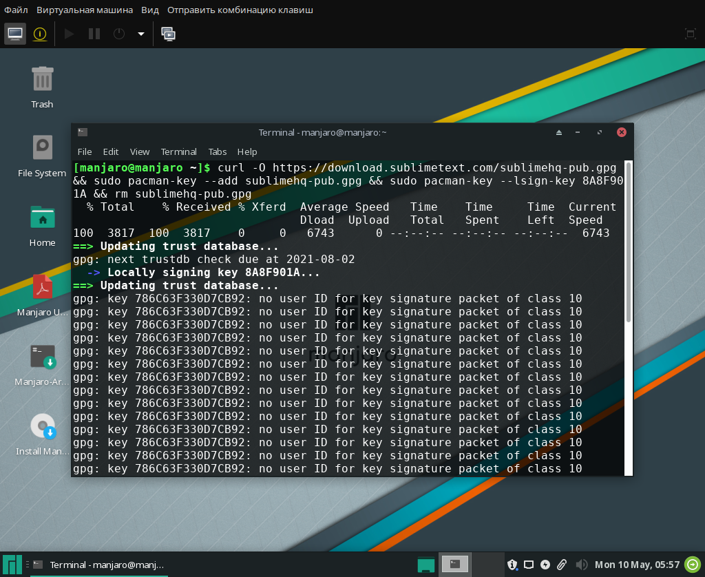 Но, как писалось выше, есть и второй способ установки Sublime Text в Arch подобных дистрибутивах. Разработчики предоставляют для дистрибутивов Linux основанных на Arch свой собственный репозиторий. А это редкость, в основном большинство разработчиков программного обеспечения останавливаются на Ubuntu. Для того что бы подключить репозиторий Sublime Text первым делом нужно скачать и установить GPG ключ:
