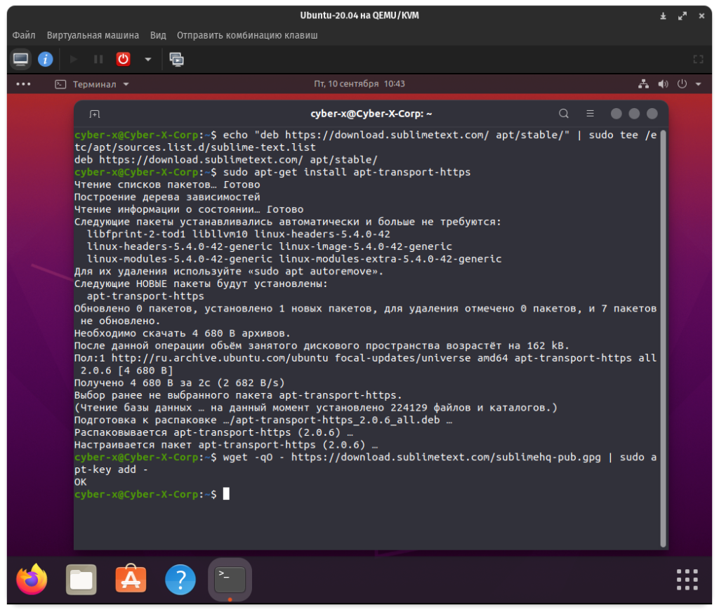 Осталось обновить списки пакетов и можно приступать к установке Sublime Text 4 в дистрибутивах Linux основанных на Deb пакетах: