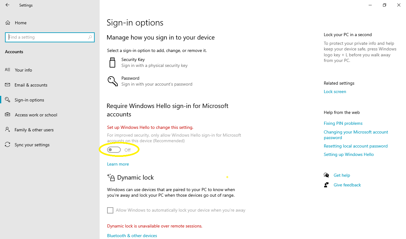 На этой странице отключите параметр Require Windows Hello sign-in for Microsoft accounts (Требовать входа Windows Hello для учетных записей Майкрософт).