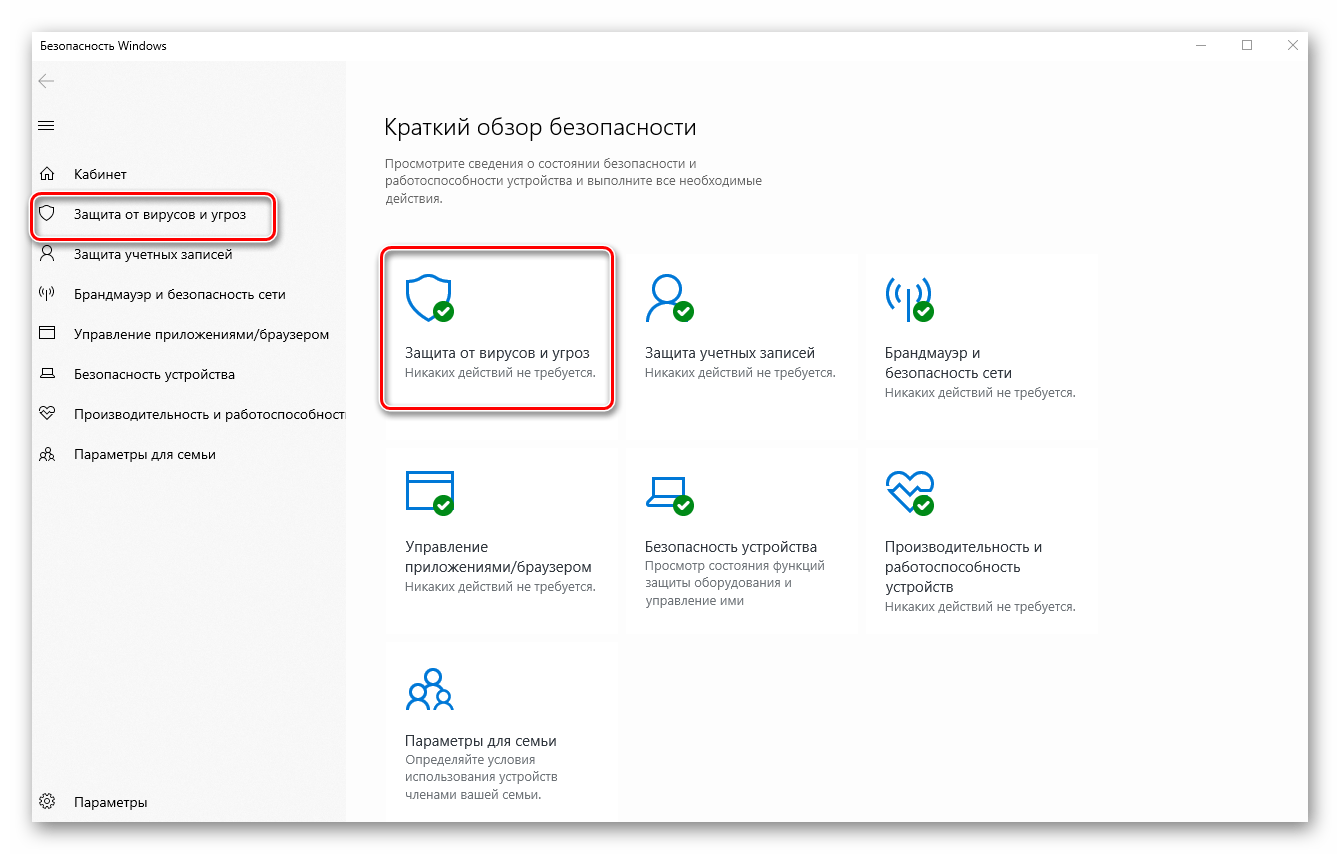 - Запустите Защитник и перейдите к разделу «Защита от вирусов и угроз».