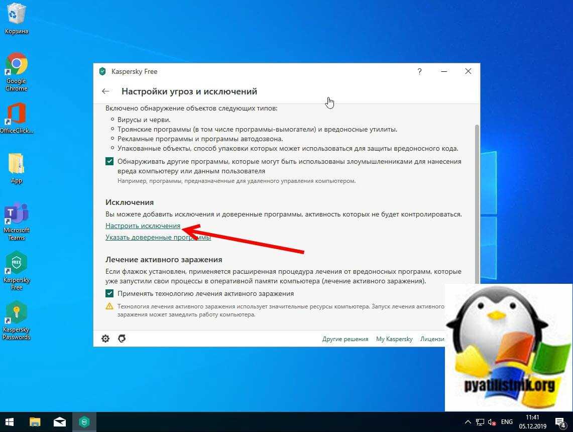 Подробнее: Как добавить файл в исключения Антивируса Касперского