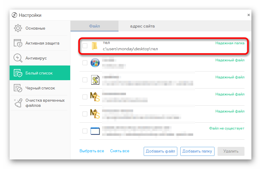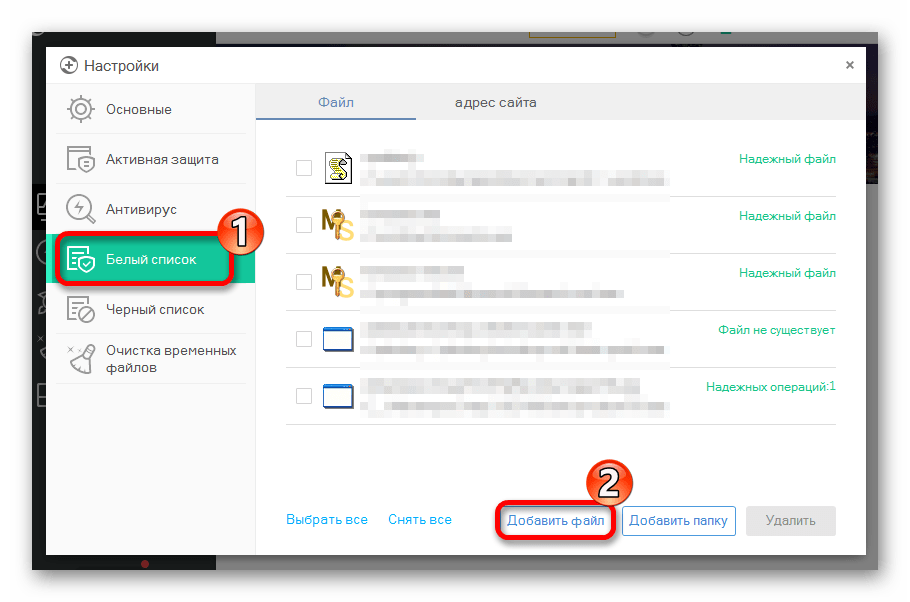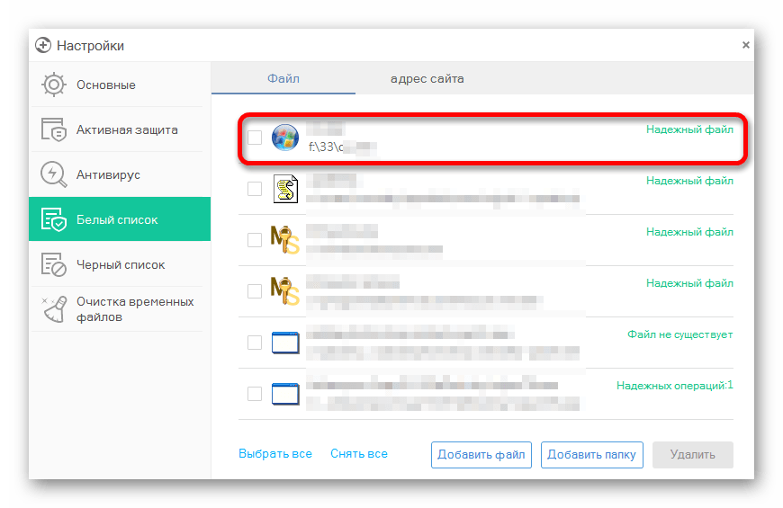 В следующем окне, вы можете добавить любой файл в белый список антивируса Касперского и они не будут больше сканироваться.