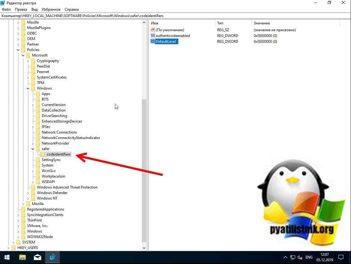 HKEY_LOCAL_MACHINE\SOFTWARE\Policies\Microsoft\ Windows\safer\codeidentifiers