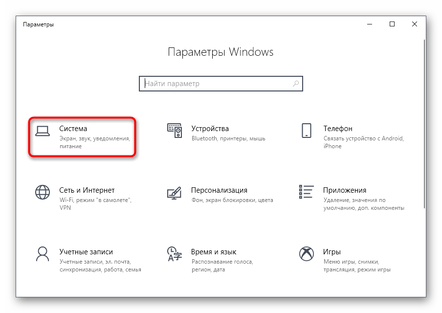 - Открыть главный раздел конфигураций. Часто он называется «Система».