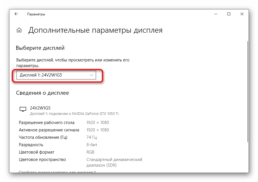 Иногда проблемы с отображением второго монитора связаны с невозможностью видеокарты обработать разную герцовку либо это не позволяет сделать сама операционная система. Тогда пользователю требуется убедиться в том, что оба дисплея работают на одной и той же частоте, что можно сделать так: