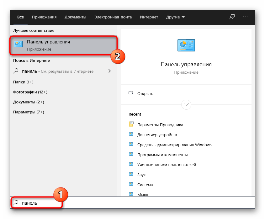 После этого закройте текущее окно и через «Пуск» отыщите приложение «Панель управления».