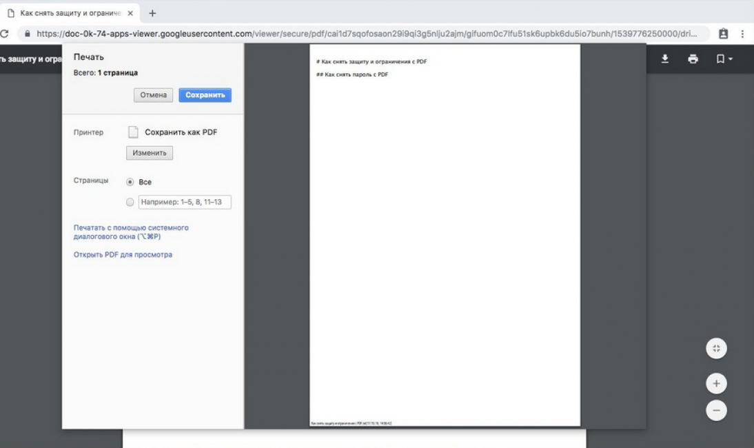 Первый способ как снять защиту и разблокировать файл PDF онлайн