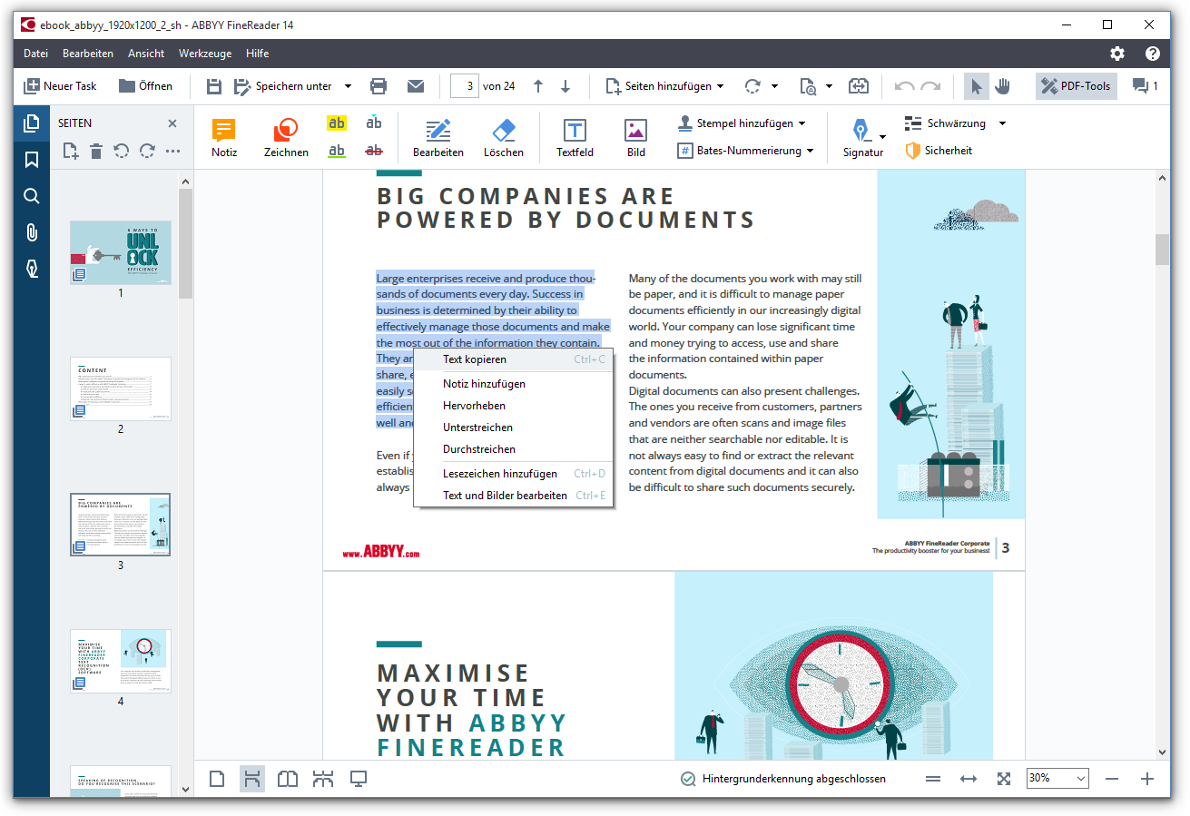 Откроется новый редактируемый файл PDF, который позволяет копировать текст.