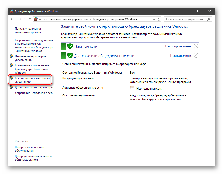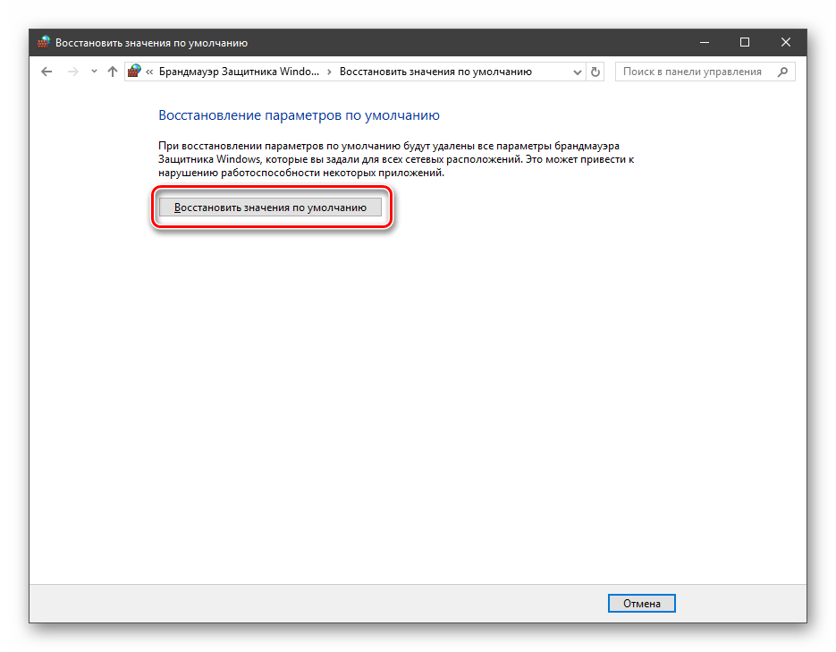 Сброс обычно производится при сбоях в работе брандмауэра в силу различных причин, а также после неудачных экспериментов с настройками безопасности. Следует понимать, что и «правильные» опции также будут сброшены, что может привести к неработоспособности приложений, требующих подключения к сети.