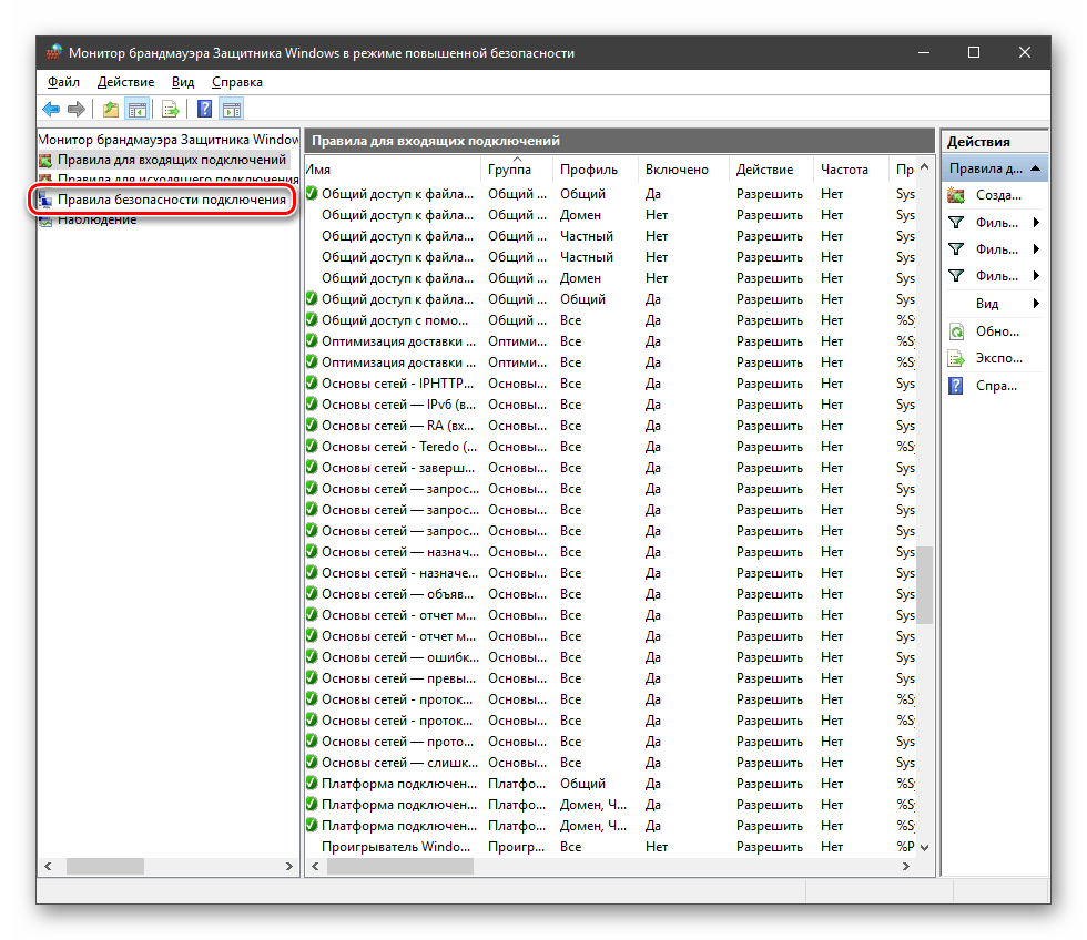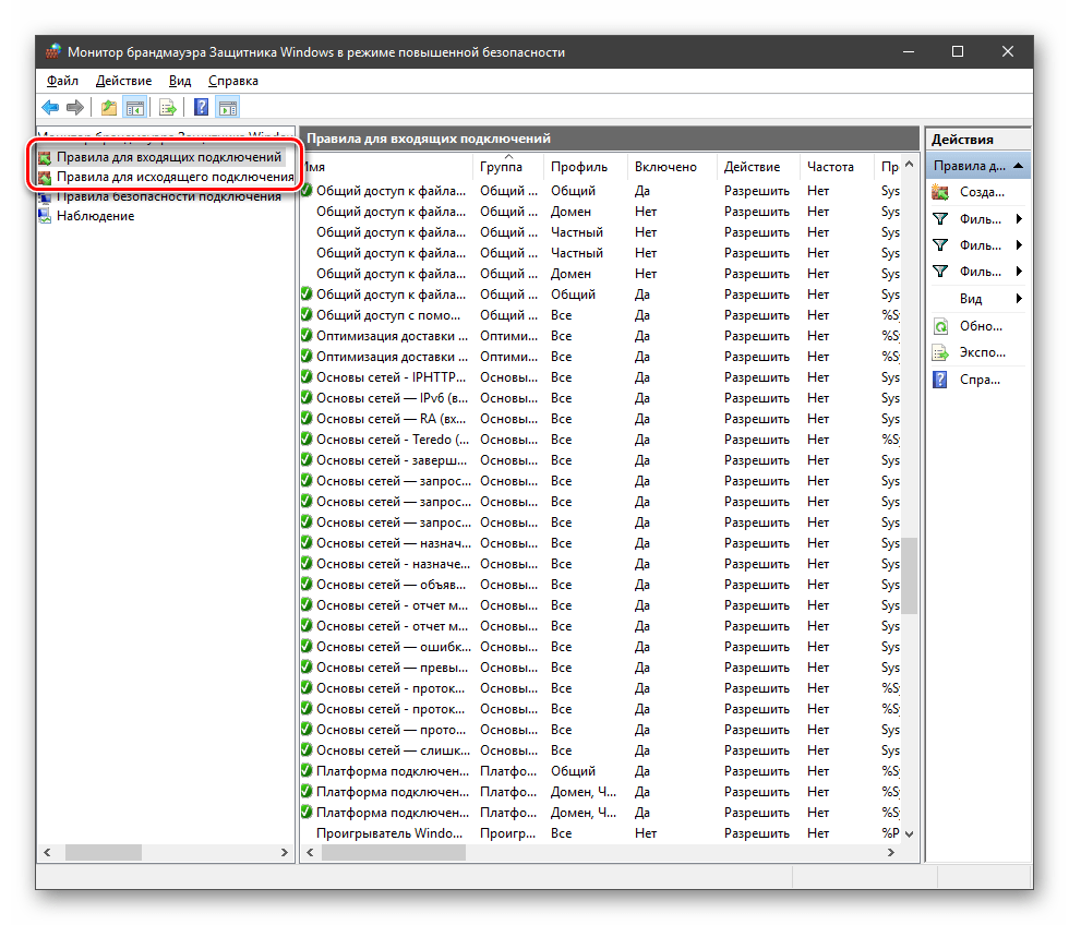 Правила – это основной инструмент брандмауэра для обеспечения безопасности. С их помощью можно запрещать или разрешать сетевые подключения. Эти опции располагаются в разделе дополнительных параметров.