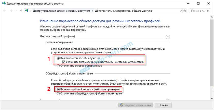 - Включить сетевое обнаружение – если сетевое обнаружение включено, то наш компьютер будет видеть другие компьютеры в сети, и будет виден другим компьютерам.