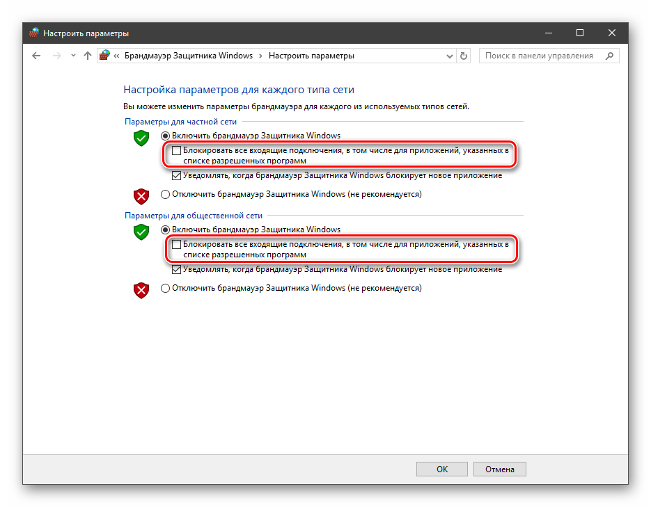 Для профиля «Частная (текущий профиль)» нам нужно установить такие настройки: