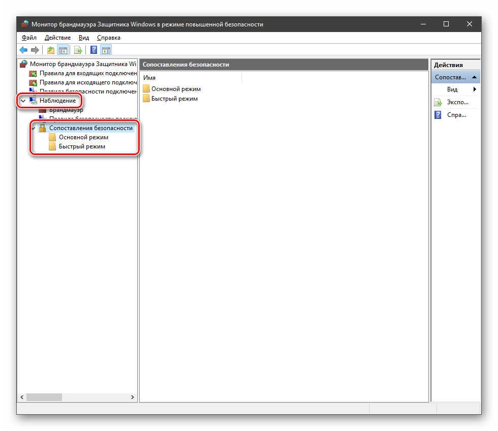 В ветке «Наблюдение», в разделе сопоставления, можно просматривать информацию о тех подключениях, для которых настроены правила безопасности.